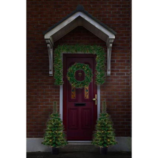 Premier Christmas Door & Porch Decoration Set Pre Lit Plain Cashmere Artificial Wreath Garland & Christmas Trees On Timer